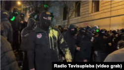 პოლიციას კვერცხები ესროლეს, პოლიციელები დემონსტრანტებს აგინებენ