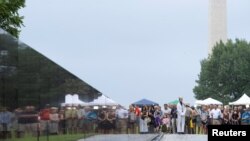 სინდი მაკკეინი, სენატორ ჯონ მაკკეინის მეუღლე, პრეზიდენტ დონალდ ტრამპის კაბინეტის უფროს ჯონ კელისთანმ თავდაცვის მდივან ჯიმ მატისთან და ოჯახის წევრებთან ერთად ვიეტნამის ომის ვეტერანთა მემორიალთან ვაშინგტონში, 1 სექტემბერი 2018 წელი.
