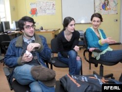 საზოგადოებრივ საქმეთა ინსტიტუტის ჟურნალისტიკის ფაკულტეტის სტუდენტები: ზურაბ ბალანჩივაძე, ანი ბერუკაშვილი და ირინა ალიაშვილი.