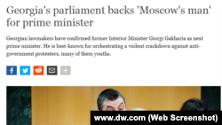 „ქართველმა კანონმდებლებმა პრემიერ-მინისტრის პოსტზე დაამტკიცეს ყოფილი შს მინისტრი გიორგი გახარია. ის ცნობილია ანტისამთავრობო დემონსტრაციის სასტიკი დარბევით. აქციის მონაწილეები უმეტესად ახალგაზრდები იყვნენ“, - წერს გერმანული საერთაშორისო საზოგადოებრივი მაუწყებელი „დოიჩე ველე“ და კვირას, 8 სექტემბერს, საქართველოს პარლამენტში გამართულ კენჭისყრას ეხმაურება, სადაც საქართველოს მინისტრთა ახალი კაბინეტის შემადგენლობა დაამტკიცეს.