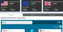 საქართველოს ბანკში საბითუმო გაცვლითი კურსი ასეთია: 1 აშშ დოლარი - 3.55 ლარი.
