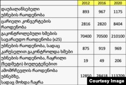 - დაუბალანსებელი შემაჯამებელი ოქმების რაოდენობა: 2020 წელს - 1175 ; 2012 წელს - 893; ხოლო 2016 წელს - 967;