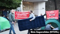 რამდენიმე ადამიანმა, რომლებიც „ღირსების მარშის“ ჩატარებას ეწინააღმდეგებიან, რუსთაველის მეტროს მიმდებარედ კარვები გაშალეს. ისინი ადგილზე დარჩენას მთელი ღამის განმავლობაში გეგმავენ და აცხადებენ, რომ 5 ივლისს მარშის ჩაშლას შეეცდებიან.