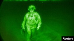 აშშ-ის თავდაცვის სამინისტრომ გამოაქვეყნა ფოტო, რომელზეც ჩანს, როგორ ადის ამერიკელი სამხედრო მაღალჩინოსანი ქაბულის აეროპორტში, თვითმფრინავ C-17-ის ბორტზე.