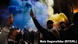 დღეს კიდევ ერთი აქცია, "ნაციონალური მოძრაობის" ორგანიზებით, გაიმართა თბილისში უკრაინის საელჩოსთან. მოქალაქეებმა საელჩოს შენობასთან გაუშვეს უკრაინის დროშის ფერების ბოლი.