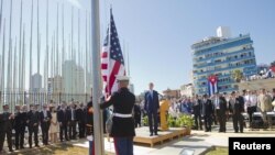 ჰავანაში ისტორიული ვიზიტით მყოფმა აშშ-ის სახელმწიფო მდივანმა ჯონ კერიმ განაცხადა, რომ აშშ-ის საელჩოს აღდგენა წაადგება ორივე ქვეყანას, აშშ-საც და კუბასაც. კერი კუბაში „ნამდვილი დემოკრატიის“ მოწოდებით გამოვიდა ცერემონიაზე, რომლის დროსაც აშშ-ის საელჩოს თავზე აშშ-ის დროშა აფრიალდა, პირველად 54 წლის განმავლობაში.