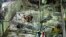 პატარა ახალი სახლებით და გადაქანებულ ჭიშკრებთან წარწერებით: „აქ